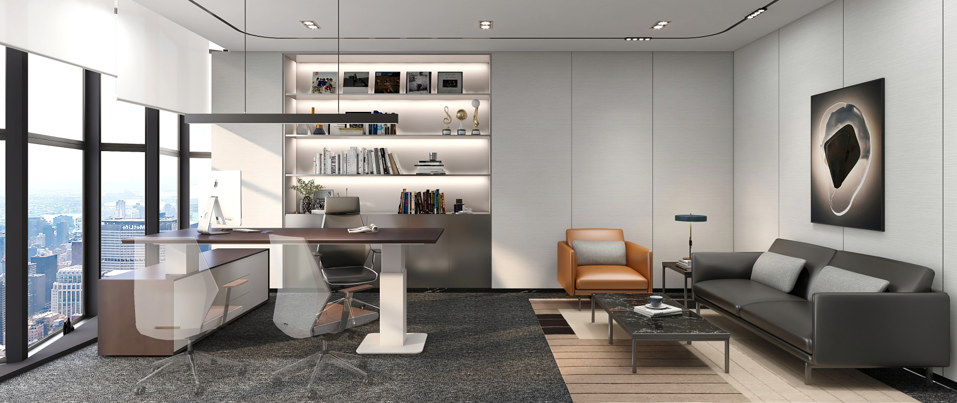 Minimalism is the reason why this idea is so intuitive and easy to accept. Users are encouraged to actively demonstrate their ability and willingness to make new progress by using chic and practical design. Take your project to the next level with our modern, high-tech, and futuristic office ideas.